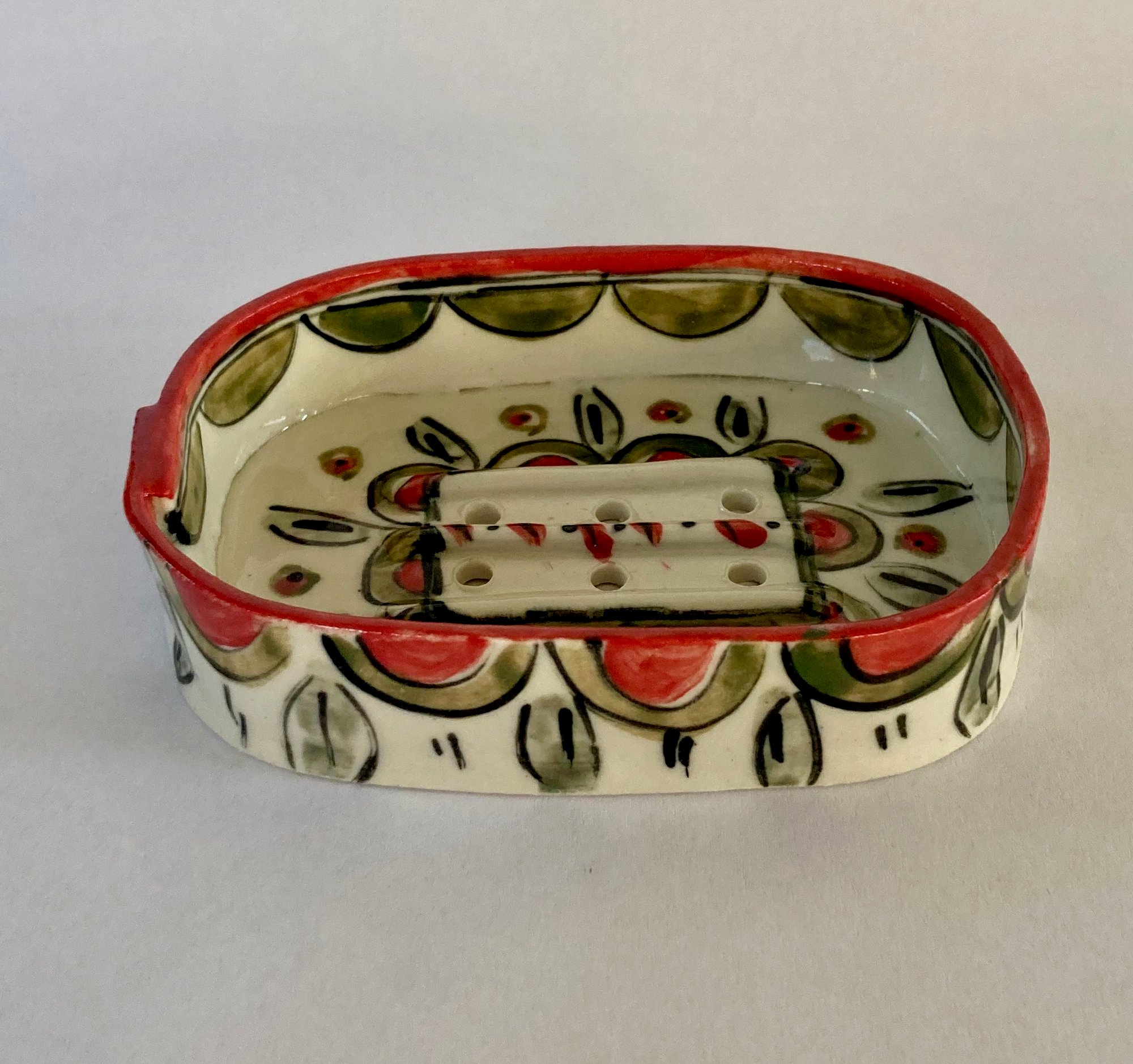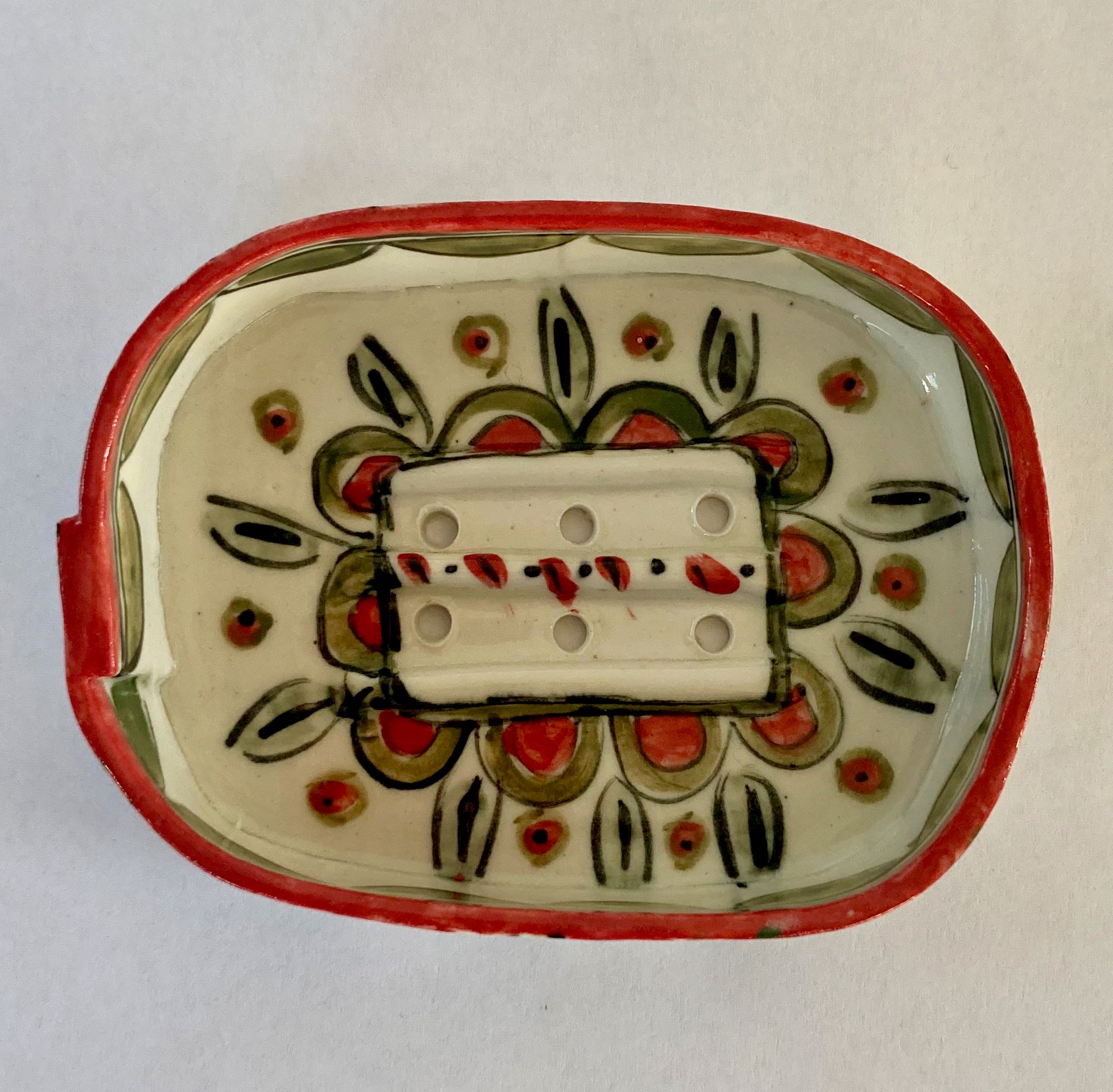 Porcelain soap dish. Hand painted pattern.